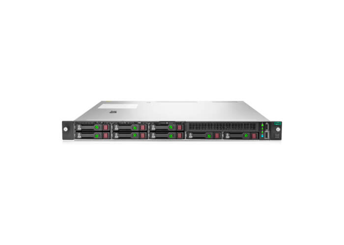 • HPE ProLiant DL160 Gen10 rack server with one Intel Xeon 4208 processor, 16 GB memory, eight small form factor drive bays and a 500W power supply.